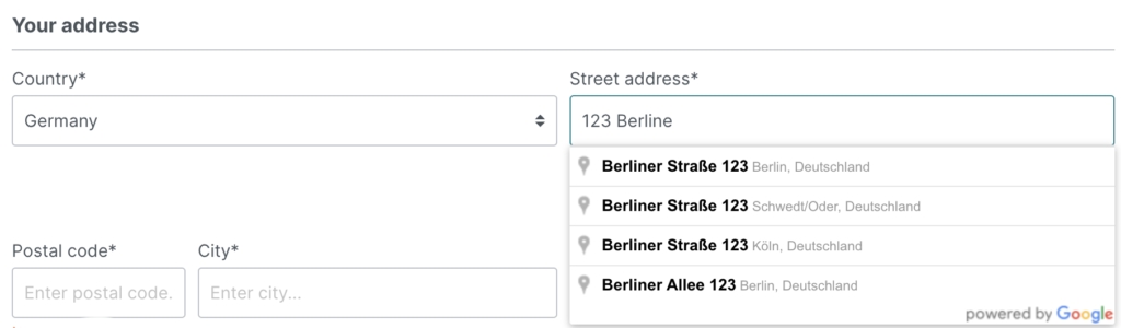 Die optionale Einstellung Auto-Complete Validierung auf Länder beschränken ermöglicht es Ihnen, die Adressüberprüfung auf bestimmte Länder oder geografische Regionen zu begrenzen. Dies kann nützlich sein, wenn Sie in Ländern tätig sind, in denen Google nur über begrenzte Adressdaten verfügt.