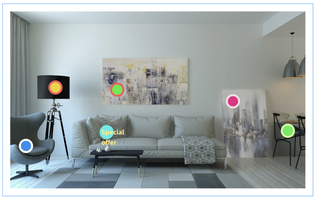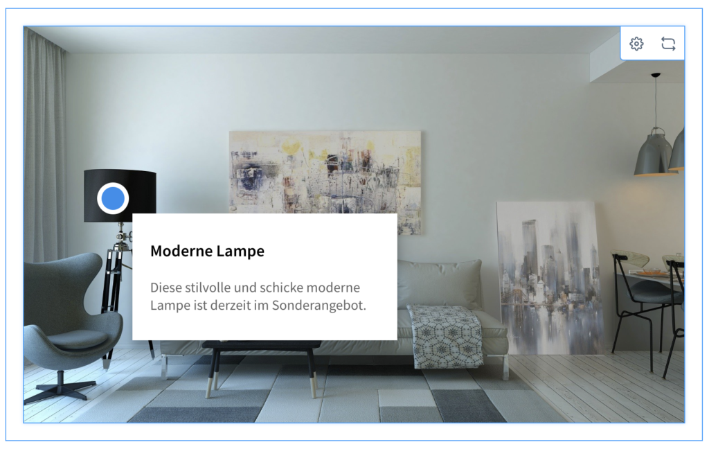 Laden Sie einfach Ihr Szenenbild hoch, definieren Sie Ihre Produkt-Hotspots und gestalten Sie Ihren Shop um – alles mit wenigen Klicks.