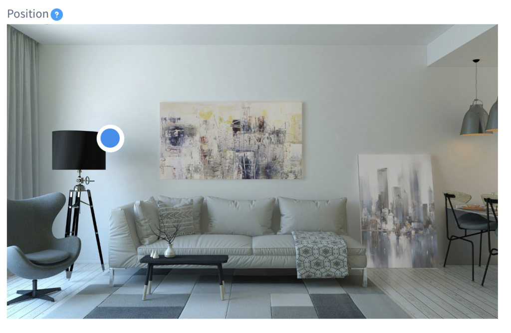 Die Hotspot-Position ist die Position des anklickbaren Elements, mit dem der Benutzer interagiert. Standardmäßig wird der Hotspot als blau-weißer Kreis vor dem Hauptbild angezeigt, das Aussehen ist jedoch vollständig anpassbar.